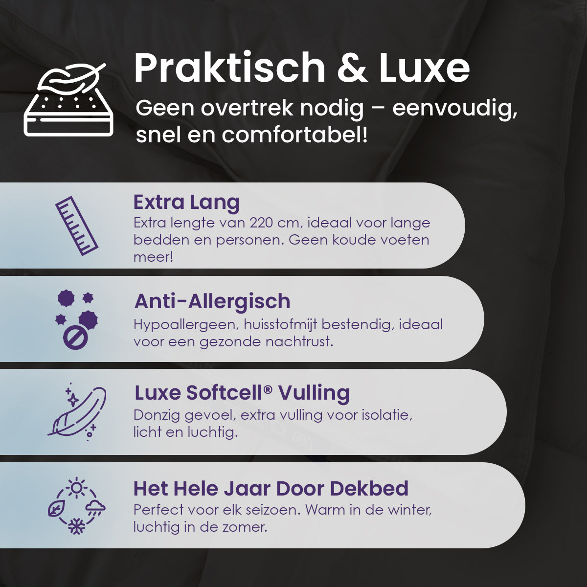 - LUXE GELVEZELS: Donzig gevoel, extra vulling voor isolatie, licht en luchtig.